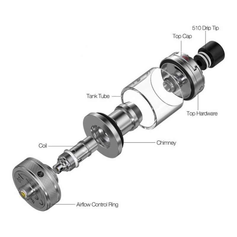 Über einen in die Basis des Verdampfers integrierten Ring können Sie den Zugwiderstand Ihrer E-Zigarette in sieben Stufen entsprechend Ihrer persönlichen Präferenzen anpassen. Je kleiner die Lufteinlassöffnung gewählt wird, desto geringer fällt der Zugwiderstand aus. Je geringer der am Verdampferkopf anliegende Widerstand ist, desto großzügiger sollte die Luftzufuhr gestaltet werden.