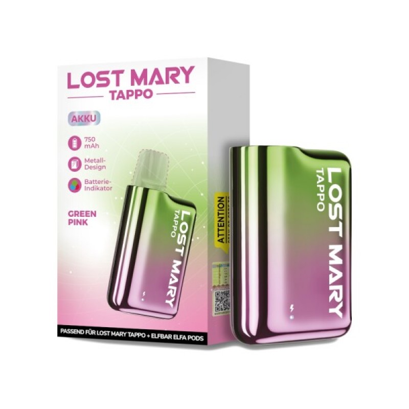 Die Lost Mary Tappo ist eine E-Zigarette, die mit den Lost Mary Tappo Prefill Pods und den Elfbar Elfa Prefill Pods kompatibel ist. Der Akku hat eine Kapazität von 750 mAh und kann mit einem USB-C Ladekabel aufgeladen werden.