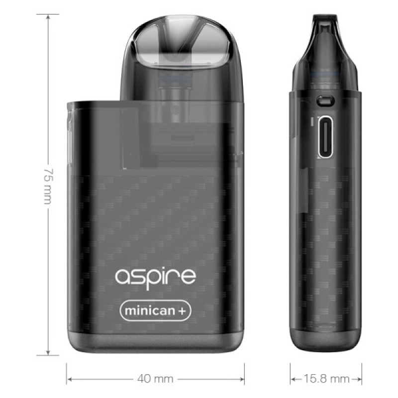 Das Minican Plus E-Zigaretten Set der Marke Aspire ist ein E-Zigaretten Set mit Pod-System. In dem Pod-System ist ein 0,8 Ohm Mesh Verdampferkopf fest verbaut. Das bedeutet, dass Sie bei einer negativen Geschmacks- bzw. Dampfentwicklung den kompletten Pod durch einen neuen ersetzen müssen. Auch der Akku ist bei der Minican Plus fest verbaut und besitzt eine Kapazität von 850mAh. Der Akku gibt mit 3,7 Volt eine konstante Leistung ab.
