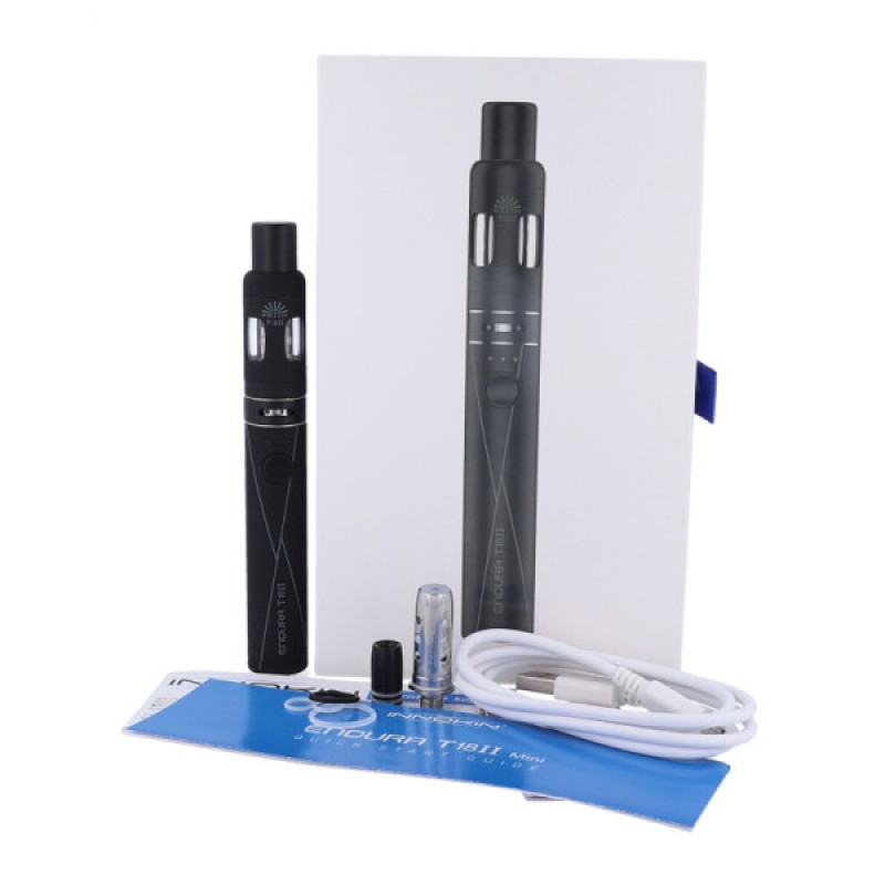 Das Endura T18 2 Mini E-Zigarette Set ist ein Gerät aus dem Hause Innokin. Die E-Zigarette wurde im All-In-One Design konzipiert. Akku und Verdampfer bilden ein fließende Einheit. Der fest verbaute Akku weist eine Kapazität von 1000mAh auf und das Füllvolumen beläuft sich auf 2ml. Zudem besitzt die Endura T18 2 Mini eine Airflowcontrol mit der Sie den Luftwiderstand individuell regulieren können.